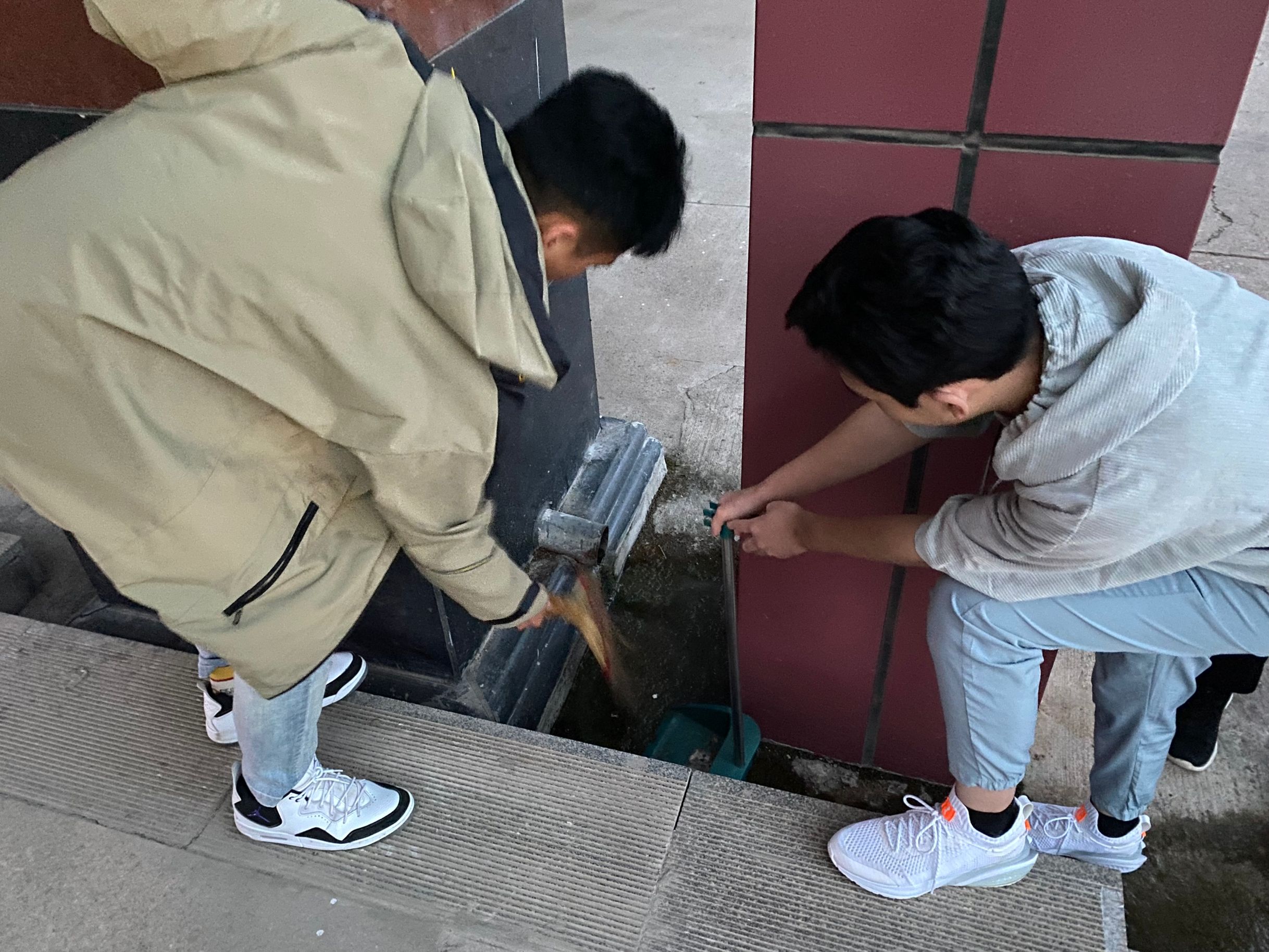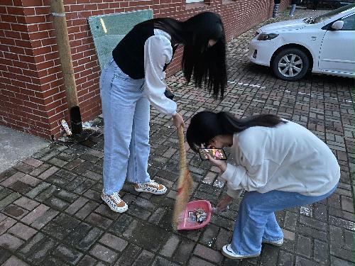 ? 各院系學生在責任區(qū)進行環(huán)境清潔維護