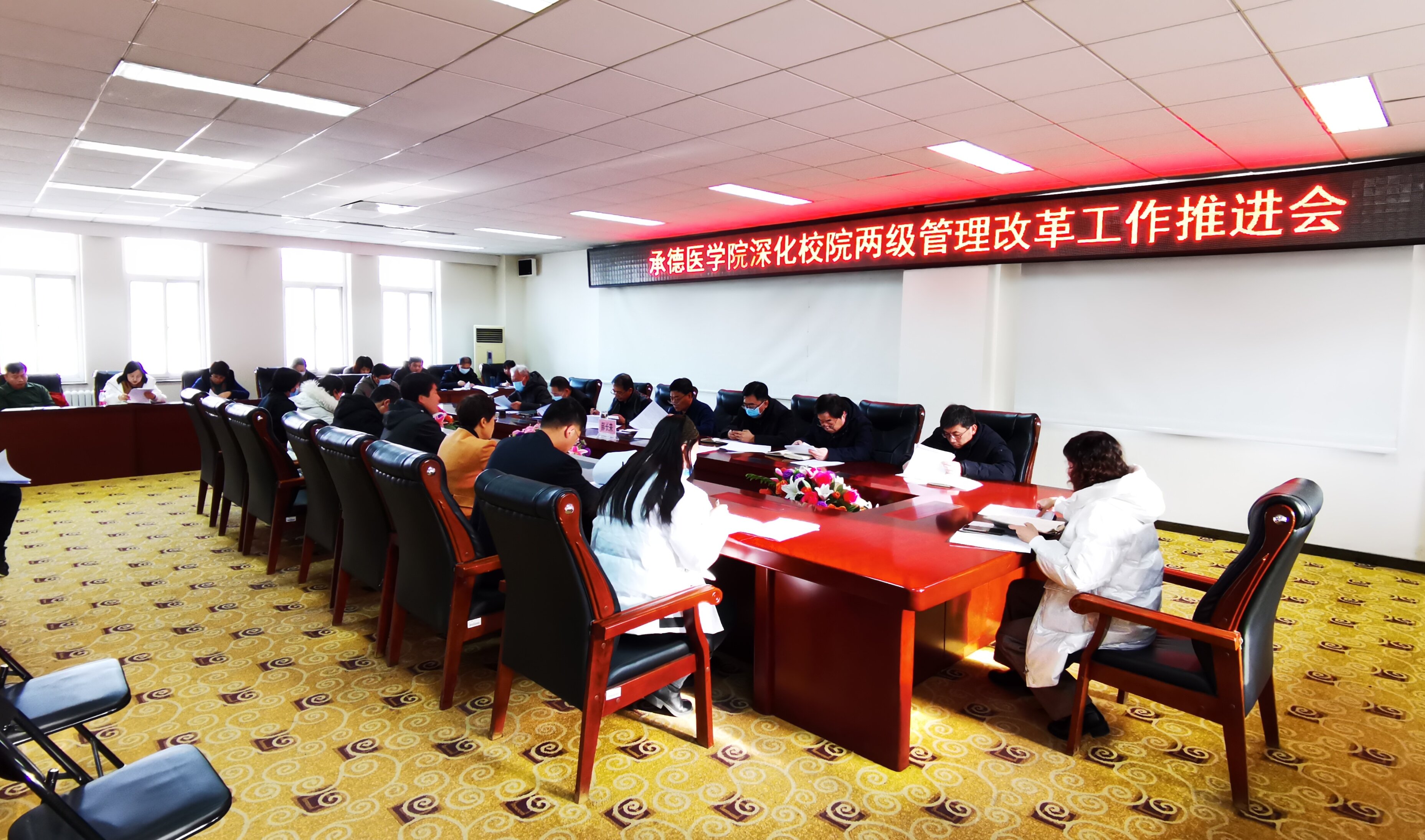 2022年1月18日下午,我校在行政樓312會議室召開醫(yī)科大學(xué)建設(shè)和校院兩級管理推進(jìn)會。黨委常委、副校長郝長來出席會議,學(xué)校各職能部門、各教學(xué)科研單位負(fù)責(zé)人參加會議,會議由郝長來主持。 發(fā)展規(guī)劃處對醫(yī)科大學(xué)建設(shè)工作方案和深化校院兩級管理體制改革方案形成過程進(jìn)行了匯報,進(jìn)一步明確了醫(yī)科大學(xué)建設(shè)期間的時間表、任務(wù)圖。各職能部門負(fù)責(zé)人和教學(xué)科研單位負(fù)責(zé)人認(rèn)真查擺現(xiàn)狀,深入剖析問題,結(jié)合學(xué)校實際情況對方案的合理性和可行性逐條進(jìn)行深入討論,就醫(yī)科大學(xué)建設(shè)年度任務(wù)分解和深化校院兩級管理體制改革提出了許多建設(shè)性意見和建議。 郝長來對醫(yī)科大學(xué)建設(shè)和校院兩級管理的推進(jìn)工作進(jìn)行了部署。他指出,醫(yī)科大學(xué)建設(shè)作為學(xué)校“十四五”發(fā)展建設(shè)目標(biāo),任務(wù)艱巨,大家一定要提高站位,結(jié)合年度重點領(lǐng)域工作,創(chuàng)新工作方式,攻堅克難,抓好組織落實;而校院兩級管理體制改革對激發(fā)二級院系行政效能、創(chuàng)造活力、推進(jìn)醫(yī)科大學(xué)建設(shè)具有重要促進(jìn)作用。希望各部門密切配合,堅定信心、履職盡責(zé)、善作善成,助推醫(yī)科大學(xué)建設(shè)發(fā)展。 (點擊每張圖片即可查看原圖)