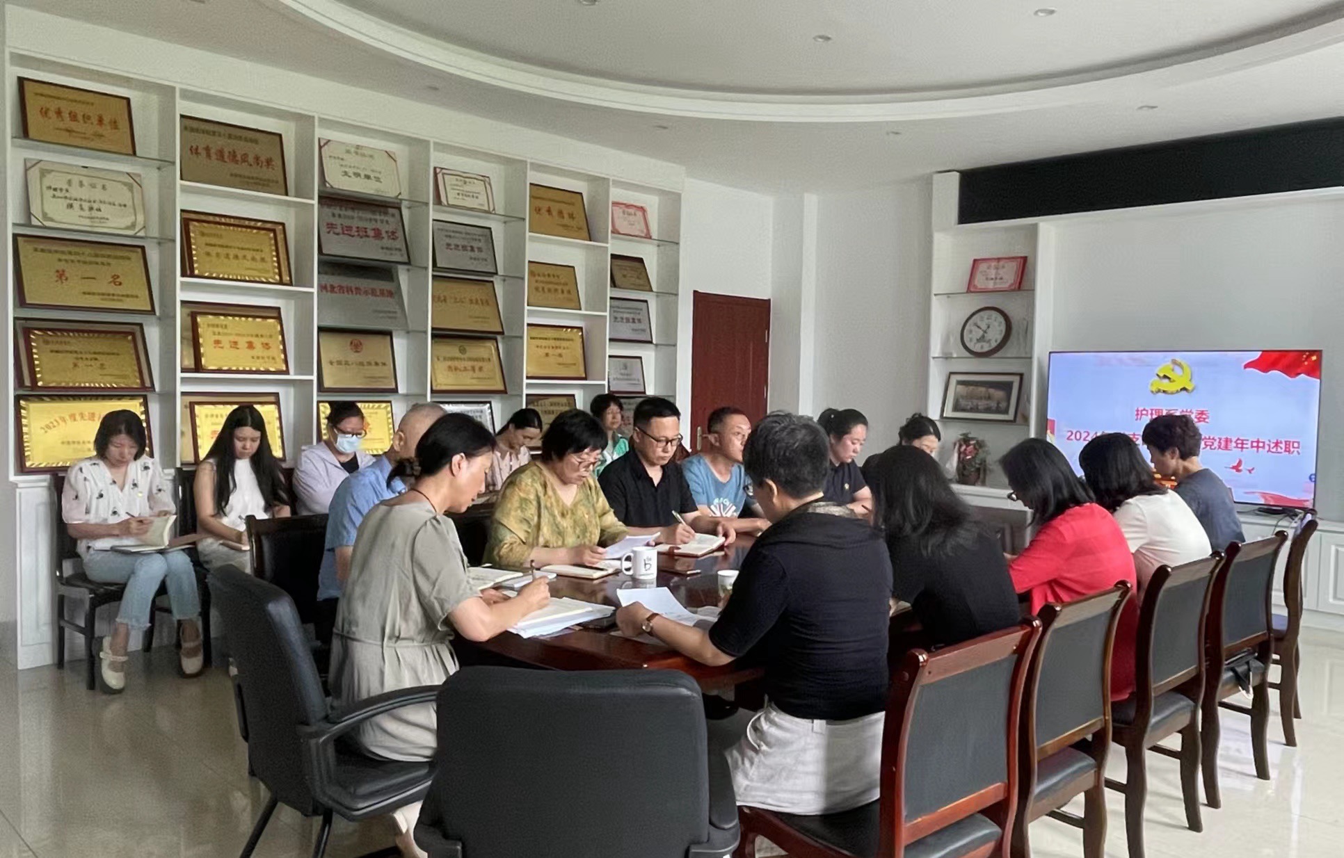 會議現(xiàn)場 護理系教工黨支部書記和學生黨支部書記圍繞黨紀學習教育、支部建設、黨員發(fā)展和支部活動等進行述職,聚焦黨紀學習教育開展情況,介紹了支部定期組織黨員學習黨的理論知識、加強黨性修養(yǎng)和黨風廉政建設的情況;聚焦支部建設方面,介紹了加強組織建設、嚴格落實“三會一課”制度和品牌創(chuàng)建等;聚焦黨員發(fā)展,介紹了積極做好黨員發(fā)展、提高黨員發(fā)展質(zhì)量、注重選拔優(yōu)秀青年加入黨組織的措施;聚焦支部活動,介紹了組織黨員參與志愿服務、社區(qū)服務和健康宣教活動的情況。 王亦娜對各黨支部黨建工作取得的成績給予肯定,同時對今后工作提出了三點希望。一是提高政治站位,扎實推進黨紀學習教育走深走實;二是加強支部建設,充分發(fā)揮基層黨組織戰(zhàn)斗堡壘作用,提高黨組織的凝聚力和戰(zhàn)斗力;三是強化主體意識,加強自身修養(yǎng),加強師德師風建設,促進教學科研和學生管理等工作全面提升。