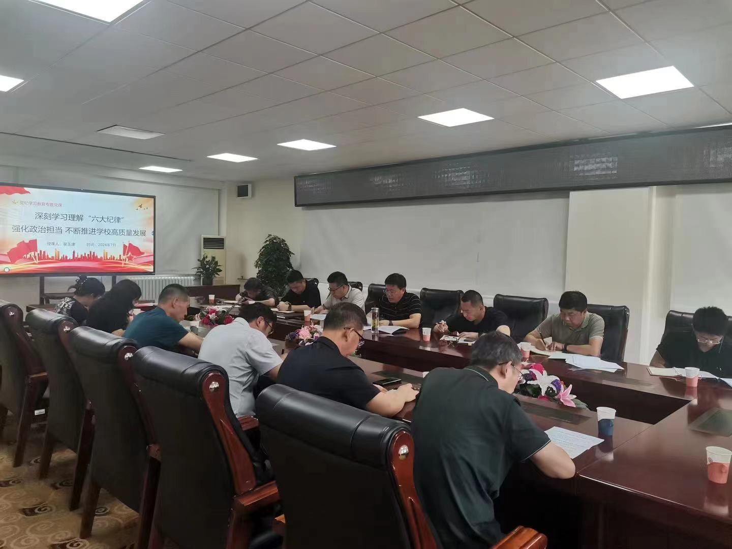 2024年7月4日下午,學校黨委常委、副校長翟玉建在行政樓312為分管部門以《深刻學習理解“六大紀律”強化政治擔當,不斷推進學校高質量發展》為題講授黨紀學習教育專題黨課。國有資產與實驗室管理處、學生處、后勤管理處、科技處、中藥研究所、蠶業研究所、實驗動物中心處級以上干部參加學習。 翟玉建講述了黨的紀律的概念、主要特征和“六大紀律”的概念、內涵及聯系。結合黨紀學習教育,就我校高質量發展和醫科大學建設分享了三點學習體會:一是作為黨員要時刻牢記初心和使命;二是強化廉政教育,筑牢思想防線;三是凝心聚力,推進醫科大學建設。他強調,幾年來,我們為“承醫夢”努力奮斗,全校師生燃起心中“一團火”,現在到了爬山過坎的攻堅環節,希望各位黨員干部激發身上的“一股勁”,聚力改革創新,著力推動發展,以永不懈怠的精神狀態真抓實干、奮勇拼搏,為建成醫科大學做出貢獻。 課后,翟玉建聽取各部門假期工作安排并進行工作部署和要求。 (點擊圖片即可查看原圖)