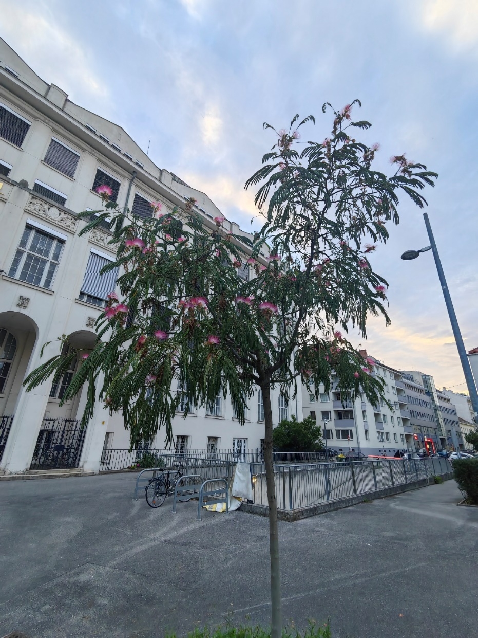 韓素華老師培育的新合歡樹 2025年7月我受單位委派來到奧地利維也納醫(yī)科大學(xué)維也納總醫(yī)院核醫(yī)學(xué)科做訪問學(xué)者,無意之中在維也納大學(xué)考古研究所的樓前,看見了兩株小小的合歡樹,我的思緒穿越了23年,回到了2002年那個(gè)8月,承德醫(yī)學(xué)院老校區(qū)的解剖樓前。
